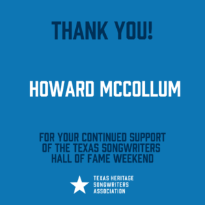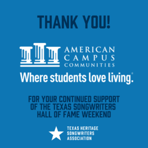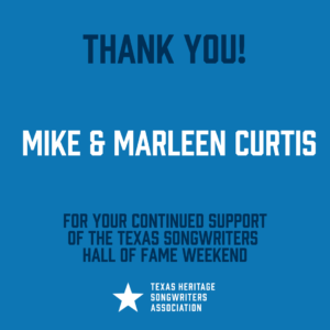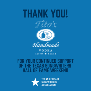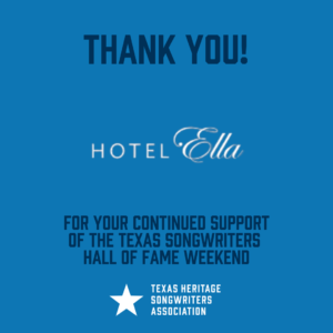Thank you to all of our incredible 2022 Texas Songwriters Hall of Fame Weekend sponsors below! With out you, these Texas songwriting honors could not exist.