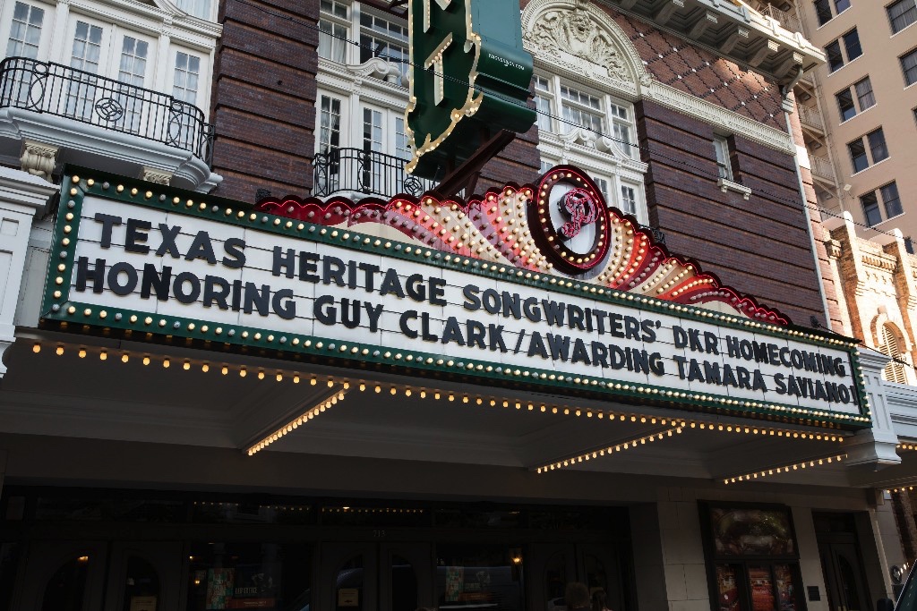 AUSTIN, Texas, April 11, 2017 — The Texas Heritage Songwriters’ Association (TxHSA) paid tribute to the life of Guy Clark last Friday, April 7th, 2017 at the Paramount Theatre in downtown Austin, Texas. This unforgettable evening included an all-star lineup of Texas songwriting greats. TxHSA Hall of Fame member Rodney Crowell produced, emceed and led in performance, joined by other special friends of Guy including Joe Ely, Bruce Robison, Lee Roy Parnell, Jack Ingram, Verlon Thompson, Terry Allen, Brennen Leigh, Shawn Camp, The Trishas, Noel McKay and Terry McBride. An incredible house band backed up these artists, comprised of guitarist Scrappy Jud Newcomb, pianist Johnny Nicholas, bassist Bruce Hughes, drummer John Chipman and fiddler Brian Beken. Special guests of the evening show included Mrs. Edith Royal, wife to the late Coach Darrell K Royal, and Cecilia Abbott, First Lady of the State of Texas.